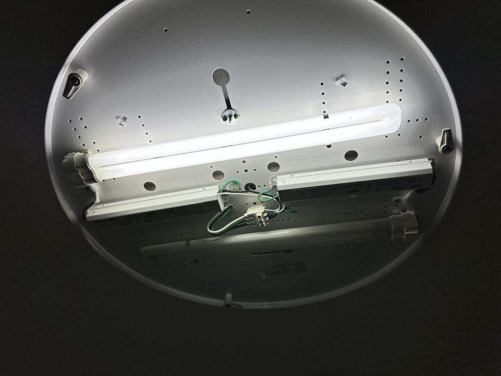 커버를 잘 보면 음영 지는 부분같은게 있는데, 저는 기존의 안정기를 탈거하지 않고 그대로 장착해서, 그부분 그림자가 생긴 것 입니다.