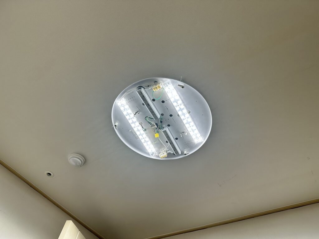 불을 켜보았습니다. LED앞에 붙어있는 확산 렌즈 덕에 어느정도 빛이 잘 퍼져주었습니다. 투명 렌즈라 이게 퍼지는게 맞아? 싶은 느낌일텐데, 등기구 안에 넣고 쓰는 제품이기 때문에 등기구 커버를 거치면서 한번 더 빛이 확산되기 때문에 전혀 문제 없습니다.