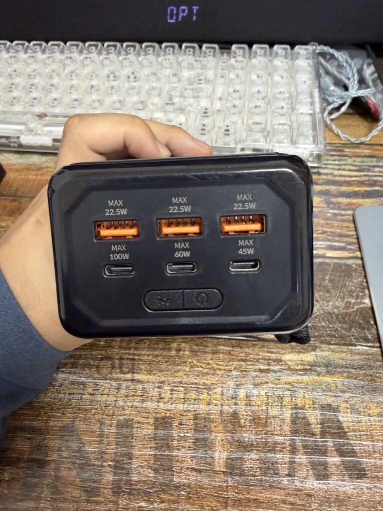 C포트가 100W, 60W, 45W 세종류가 있는데, 세 포트 다 입출력이 가능해서 포트에 적힌대로 전력제한은 걸렸지만 어디에 꽂아도 충전이 가능했습니다.